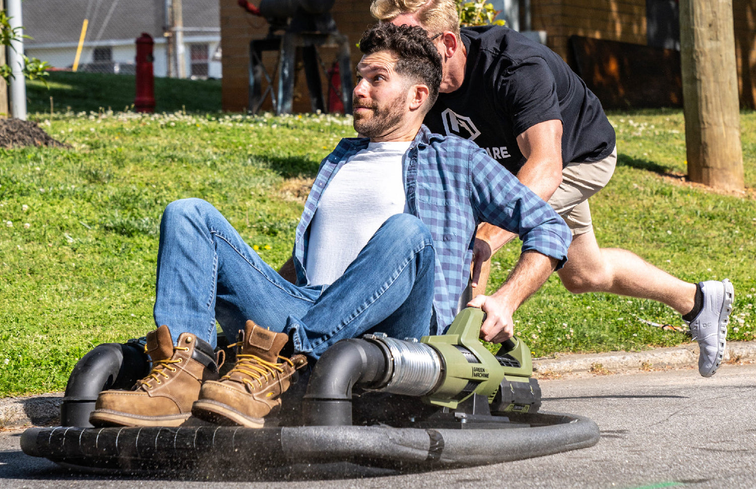 With just a few tweaks you can turn the Green Machine 665CFM Battery Powered Blower into your own hovercraft.